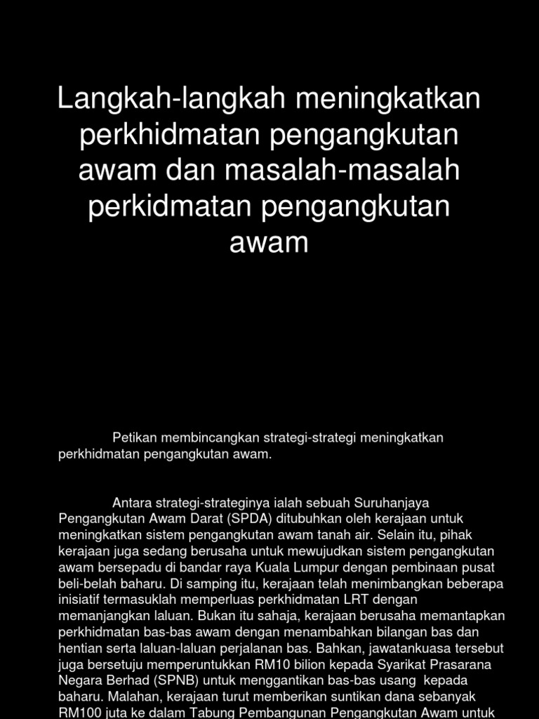 Langkah Langkah Meningkatkan Perkhidmatan Pengangkutan Awam Dan Masalah Masalah Perkidmatan Pdf