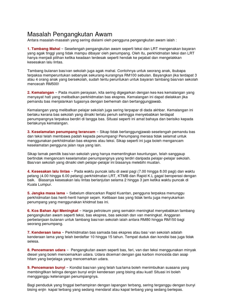 Mengenal Pasti Dan Huraikan Masalah Pengangkutan Awam Mengenal Pasti Dan Huraikan Masalah Pengangkutan Awam Antara Masalah Perkembangan Pengangkutan Course Hero